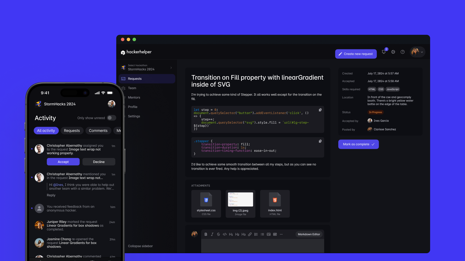 HackerHelper connects hackers with mentors, helping them get the support they need faster.
